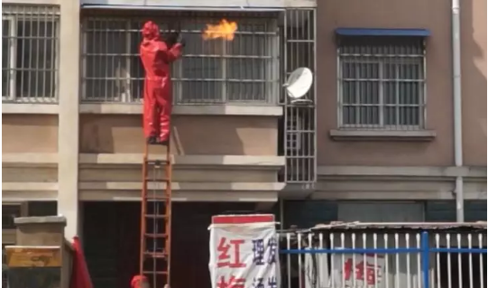在该单元楼,消防员发现两马蜂窝。马蜂在飞来飞去,严重干扰该住户的正常生活。