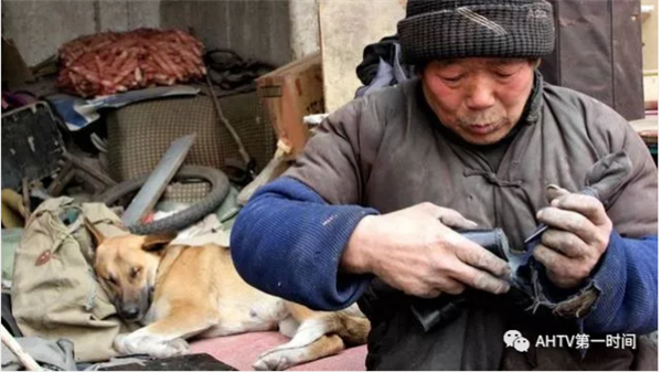 在河南洛阳也有这么一条聪明懂事的狗,洛阳的老马修鞋已经有40年的了,鞋摊儿已经成为这条街上很多人的记忆——记忆里不仅有老马,还有老马的大黄狗。