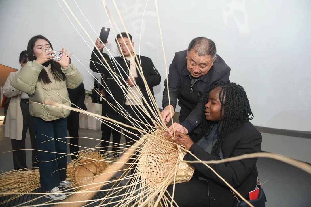 多哥共和国驻华使馆参赞库博德纳·蒂芙娜还兴致勃勃地学习体验了一把编花篮。