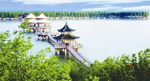 颍州西湖为国家AAA级风景区,位于阜阳城西北一公里新泉河两岸,是古代颍河、清河、小汝河、白龙沟四水汇流处。因阜阳在北魏以后称颍州而得名,为唐、明、清历代名胜。明代《正德颍州志》载:西湖“长十里,广三里,水深莫测,广袤相齐”。苏轼曾在诗中将颍州西湖与杭州西湖相媲美,“大千起灭一尘里,未觉杭颍谁雌雄”。从宋代起有北宋词人、宰相晏殊,北宋文学家、史学家欧阳修、苏轼、宋代中书侍郎吕公著等七大名人知颍州,为古颍州西湖建设立下了不朽的功勋,并留下了113首著名诗篇,加之71名古代和近代诗人的诗篇共259首。其中唐宋八大家占四人,还有南宋四大家之一的杨万里。