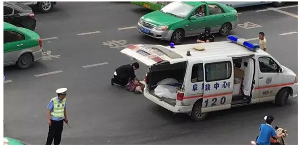 5月21日下午17时许,界首市公安局新华派出所值班民警陈振威、付杰在辖区内巡逻,当巡逻到界光路吕寨路段的时候,发现汪庄行政村的村干部尹从民、郭士贤站在路边,有一个穿着一件红色雨衣的男子躺在路上,