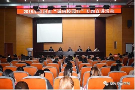 5月22日下午,由安徽省教育厅、人民银行合肥中心支行主办,阜阳师范学院、人民银行阜阳市中心支行承办,国家开发银行安徽省分行、阜阳市颍东农村商业银行、交通银行阜阳分行共同参与的2018年高校“诚信校园行