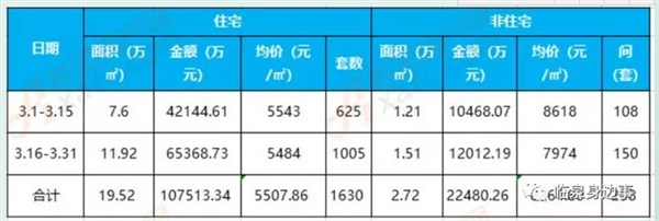 原创资讯:临泉县3月份商品房成交面积22.25万㎡,金额129993.61万元,均价5842.41元/㎡;其中住宅类商品房销售备案1630套,面积19.52万㎡,均价5507.86元/㎡;非住宅类商品